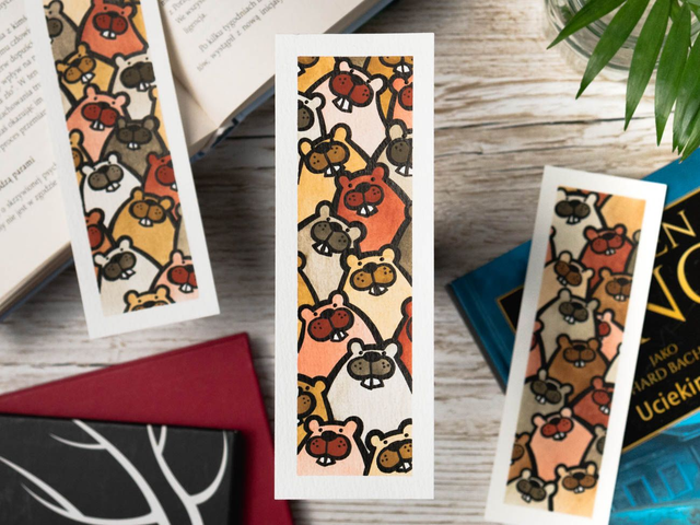 Ręcznie malowana zakładka do książki w bobry to idealny prezent dla fana uroczych zwierzaków. Te boberki tylko czekają, aby wskoczyć do Twojej książki! Każda zakładka z bobrami została ręcznie namalowana w mojej pracowni, za pomocą farb akwarelowych i cienkopisów kreślarskich.