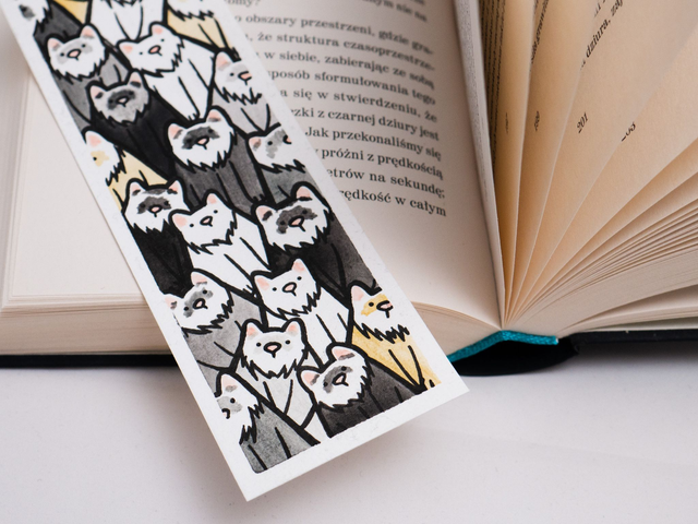Lubisz fretki? A lubisz książki? To teraz połącz ze sobą te dwie rzeczy i otrzymasz idealną zakładkę do książki! Nie jest tak długa jak prawdziwa fretka, ale dzięki temu pasuje do każdego rozmiaru książki! Każda zakładka w fretki została ręcznie namalowana w mojej pracowni, za pomocą farb akwarelowych i cienkopisów kreślarskich.