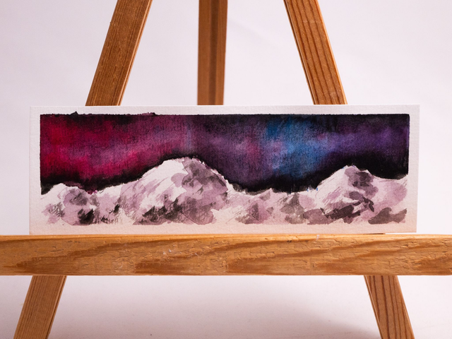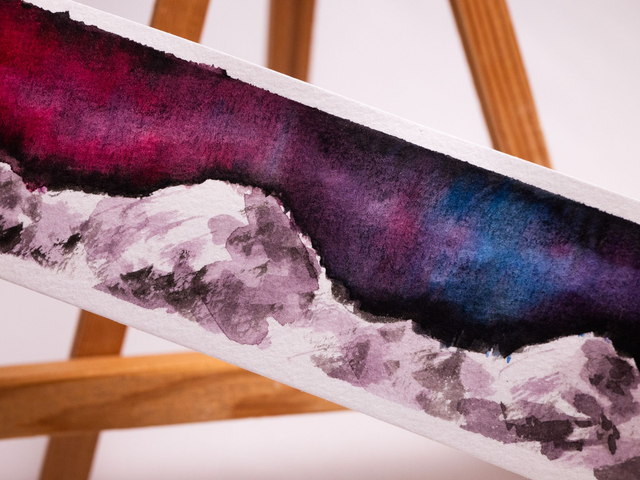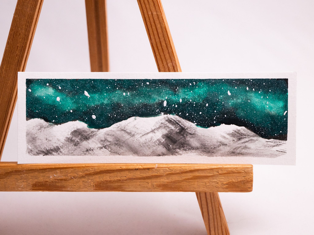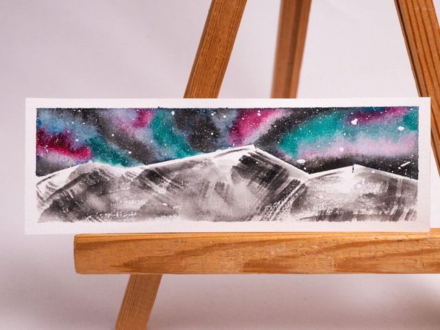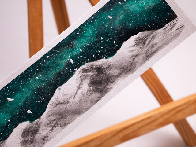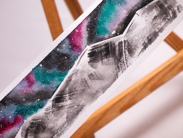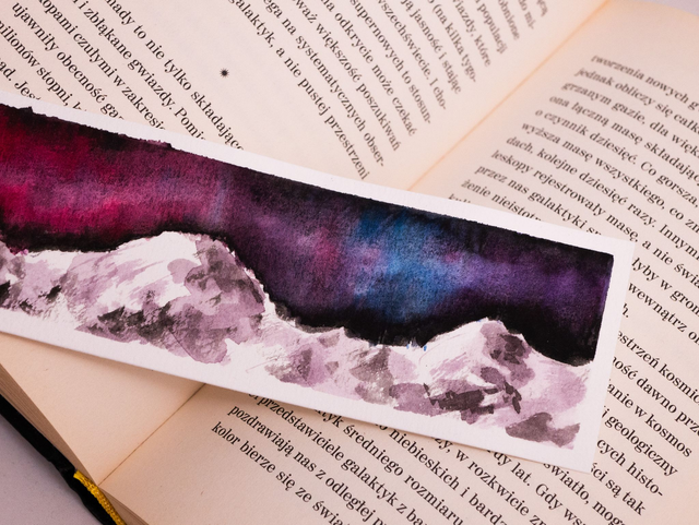 Każda zakładka z górami została ręcznie namalowana w mojej pracowni, za pomocą farb akwarelowych.
