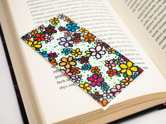 TO NIE WYDRUK! Każda zakładka w kwiaty została ręcznie narysowana w mojej pracowni, za pomocą cienkopisów kreślarskich i markerów akrylowych. Nie ma dwóch takich samych zakładek. Ten jedyny w swoim rodzaju obraz to połączenie sztuki z użytkowością!