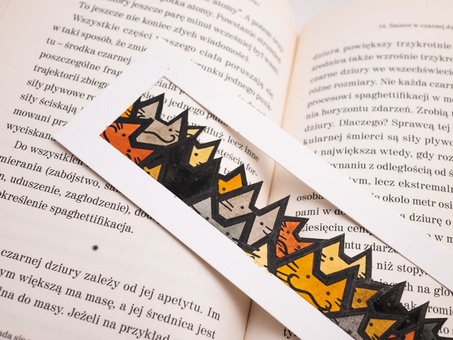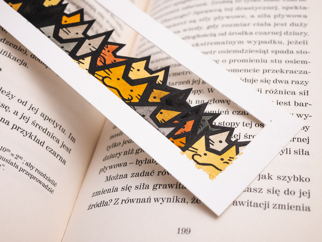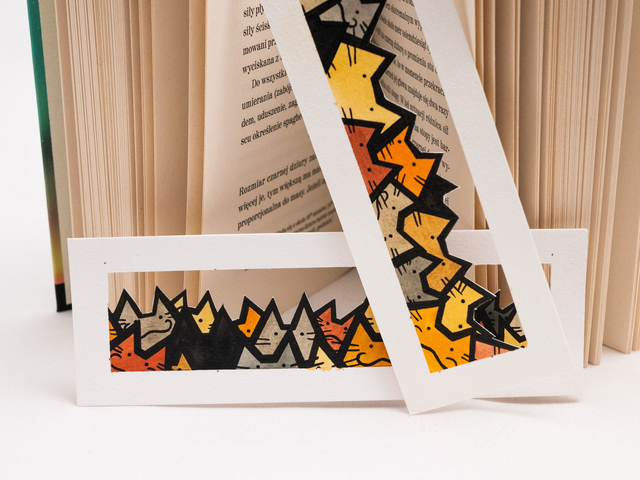 Ręcznie malowana zakładka do książki z kotkami to idealny prezent dla kociary. W dodatku ma wycięte okienko, przez które można czytać tekst!
