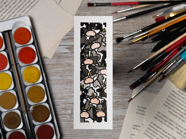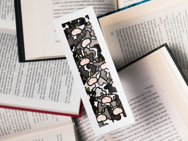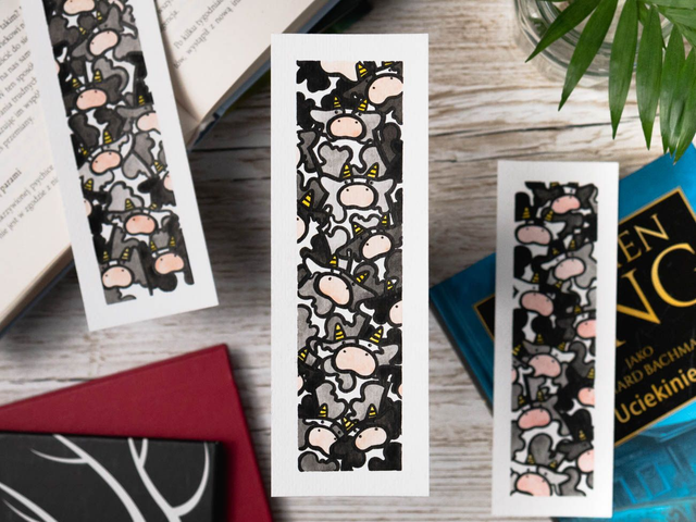 Ręcznie malowana zakładka do książki z krówkami to idealny prezent dla książkary. Są łaciate i tylko czekają, aby wskoczyć do Twojej książki! Każda zakładka z krówkami została ręcznie namalowana w mojej pracowni, za pomocą farb akwarelowych i cienkopisów kreślarskich.