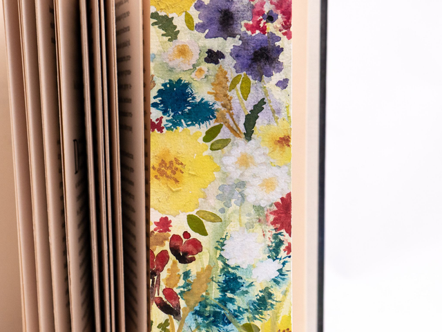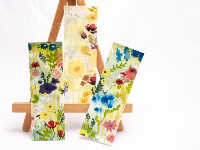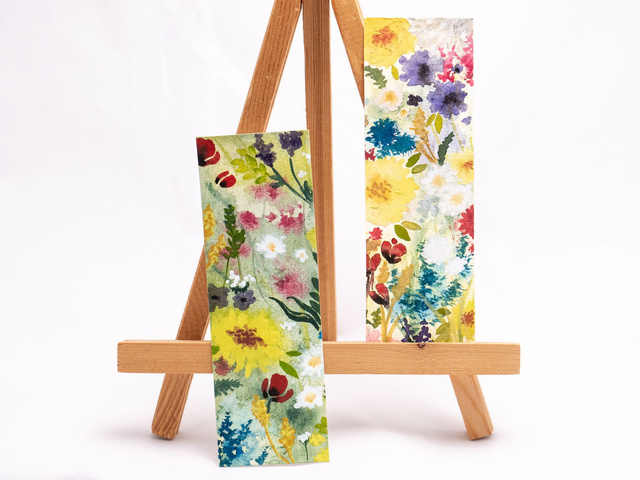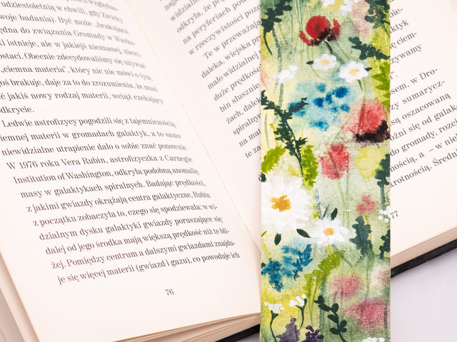 Każda zakładka w kwiaty została ręcznie namalowana w mojej pracowni za pomocą farb akwarelowych.