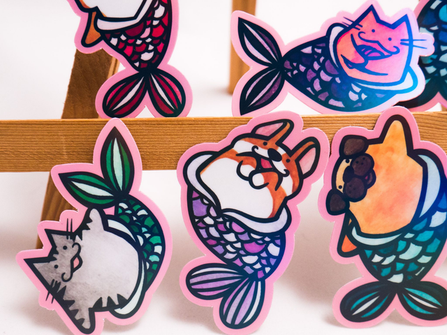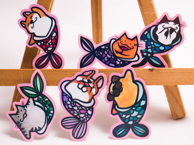 Stworzone z miłości do barw, magicznych stworzeń, psów i kotów. Naklejka z syrenką została wydrukowana w Polsce.