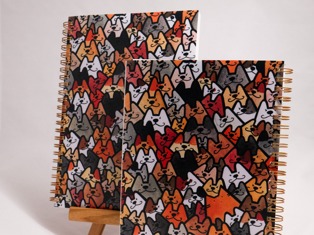 Do tego oryginalny, autorski wzór z serii Impostor - CATastrofa! Mnóstwo uroczych piesków, a wśród nich zaplątał się nieoczekiwany gość. Wzór jest ten sam na okładce przedniej i tylnej. Na pewno trudno go przeoczyć w stercie dokumentów czy innych zeszytów!