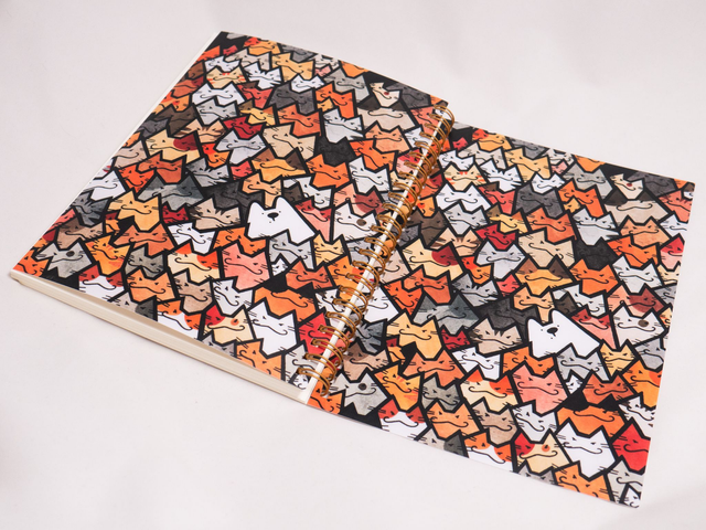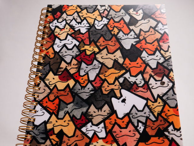 Do tego oryginalny, autorski wzór z serii Impostor - PSIOkalipsa! Mnóstwo uroczych kotków, a wśród nich zaplątał się nieoczekiwany gość. Wzór jest ten sam na okładce przedniej i tylnej. Na pewno trudno go przeoczyć w stercie dokumentów czy innych zeszytów!